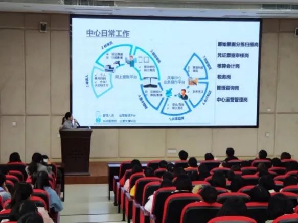 宣讲会由四川财经职业学院实训中心老师陈世千主持,共同为共享财务书写新的篇章。